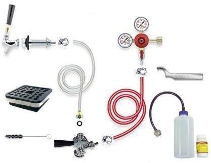 Easily convert an old refrigerator to a home draft beer dispenser. This kit includes all the hardware you need to start pouring cold draft beer anytime. This kit is packaged with instructions for quick and easy installation. In a matter of minutes you could be drinking cold draft beer in the comfort of your home. Any size fridge will work as long as it's large enough to hold a keg. Parts included with kit: 5 feet of beer line with hex nuts, Complete beer shank, Chrome faucet, Black faucet knob, 5 feet of air line with clamps, Double gauge CO2 regulator, Direct draw cleaning kit, 4 oz Cleaning Powder w/ instructions, Dump-style drain tray with mounting hardware (7x7x2), Faucet brush, Faucet wrench, and an American Sankey keg coupler (commonly referred to as the tap). This unit can easily be adjusted to accommodate ball lock or pin lock soda kegs for your home brew or any European beer.